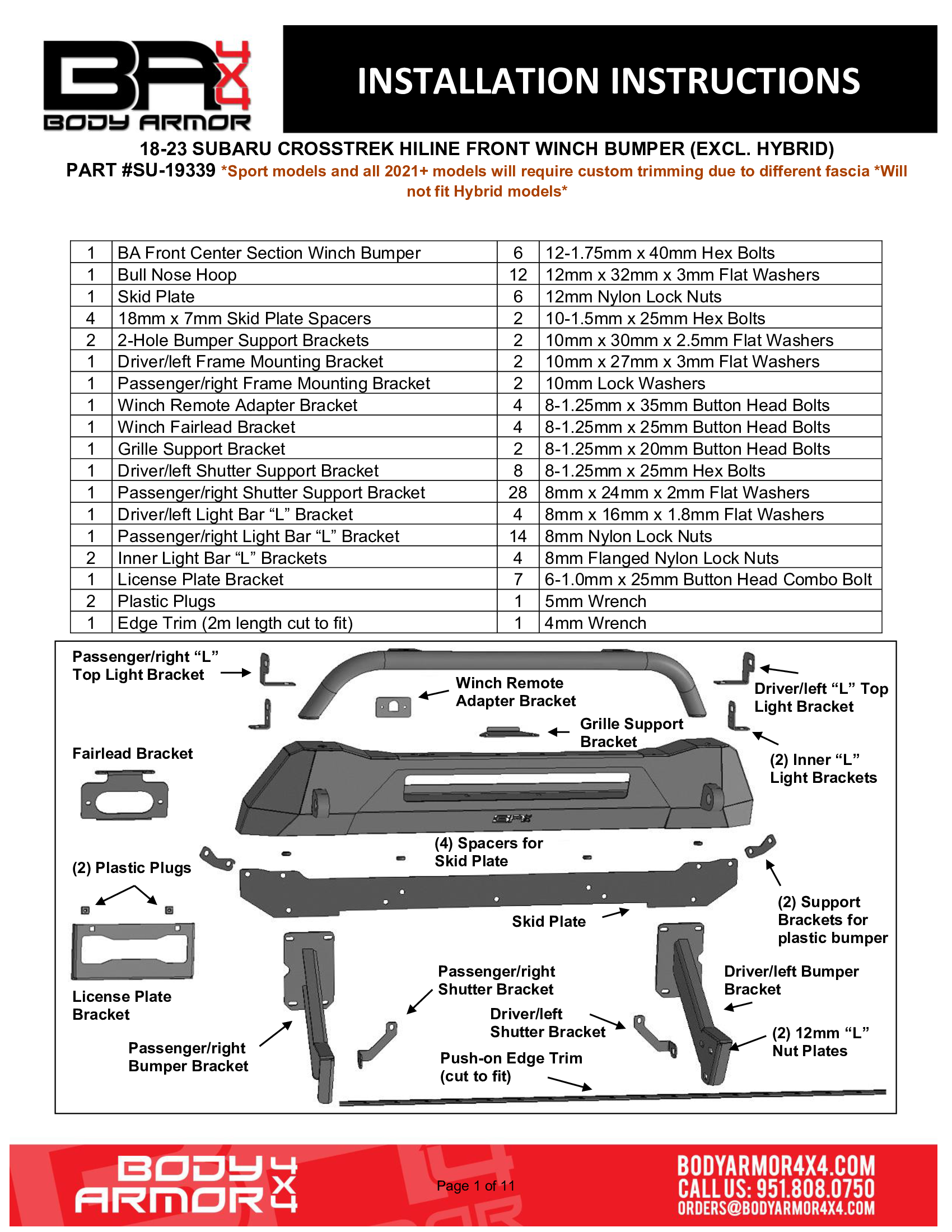 Body Armor 4x4 18-21 Subaru Crosstrek HiLine Front Winch Bumper Rear Bumper